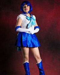 Gatomon as Super Sailor Mercury in a costume made by Te Confecciono Cosplay. |