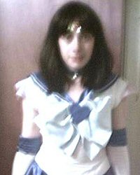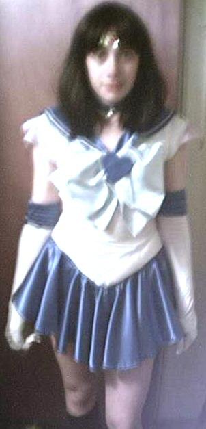 The Lady of Silent Destruction as Super Sailor Mercury in a costume she made herself.