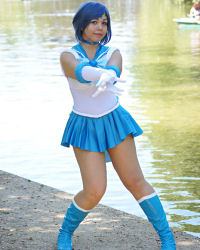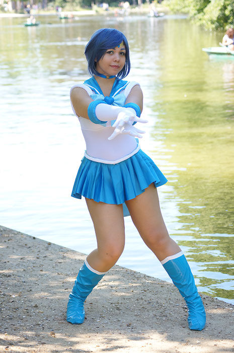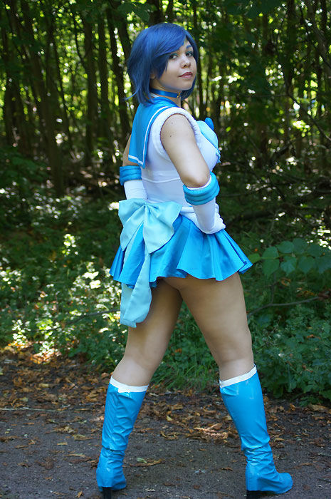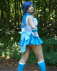 Minako as Super Sailor Mercury in a costume she made herself.