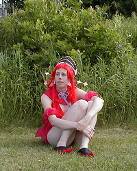 Sailor Kakyuu poses with a Indian Paint Brush flower. |