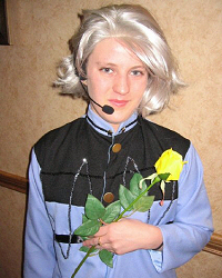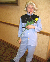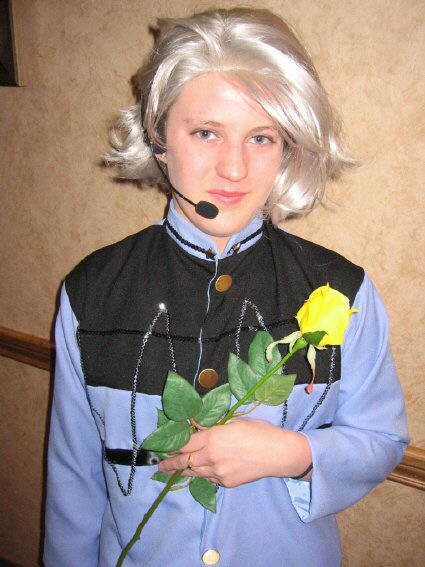 Stephanie as Yaten in his school uniform that she made with Seiya Kou. |