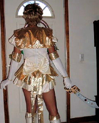 A back view of the Eternal Sailor Uranus costume.
